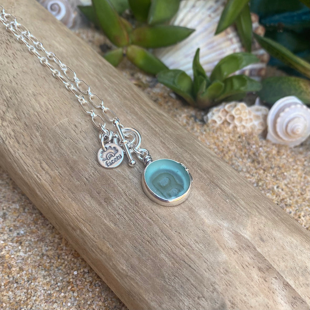 "B" for Blue Ohajiki Sea Glass Pendant— Sterling Silver