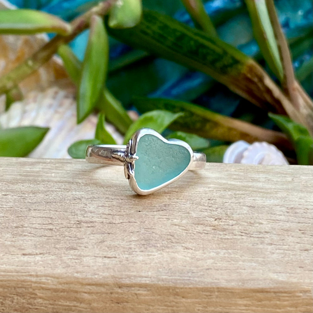 Light Teal Signature Sea Glass Heart Ring — Sterling Silver