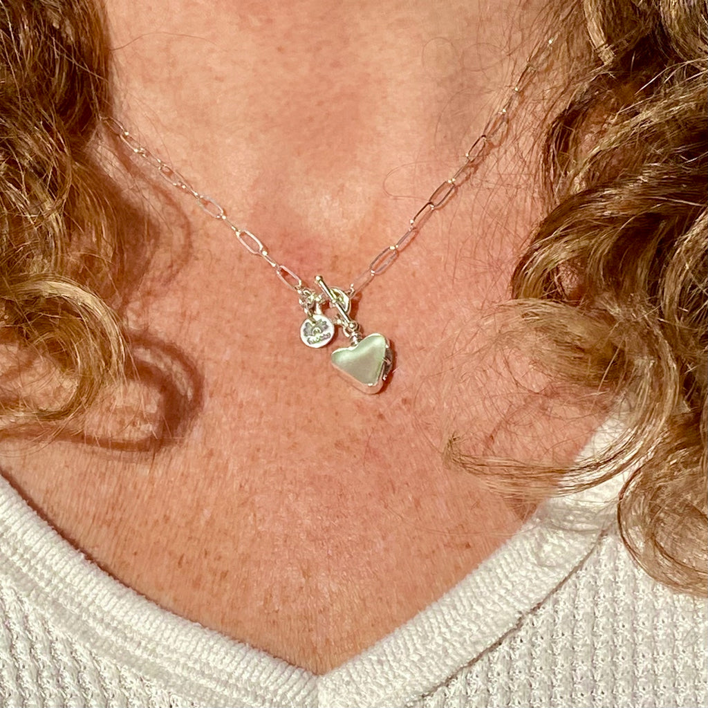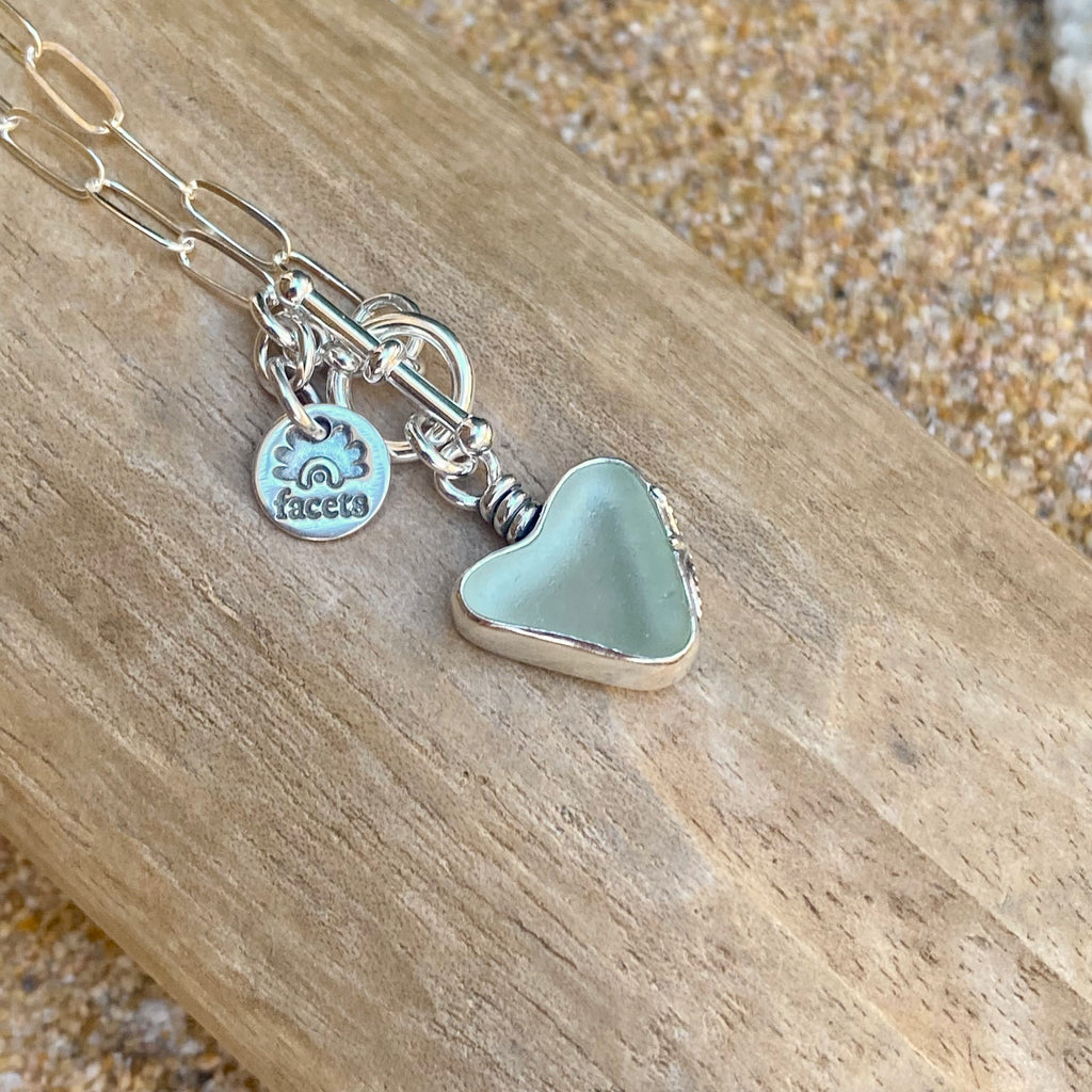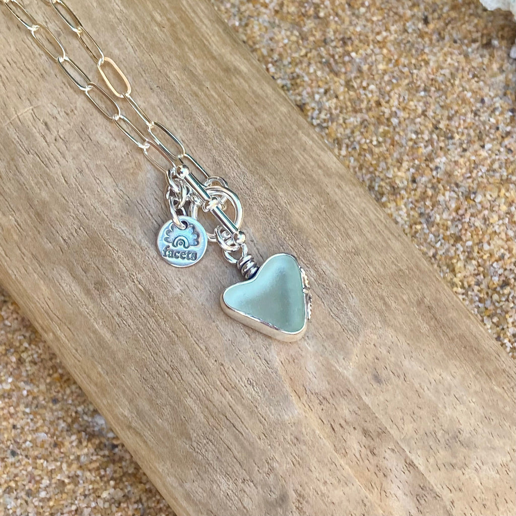 Signature Style Palest Green Sea Glass Heart Necklace— Sterling Silver
