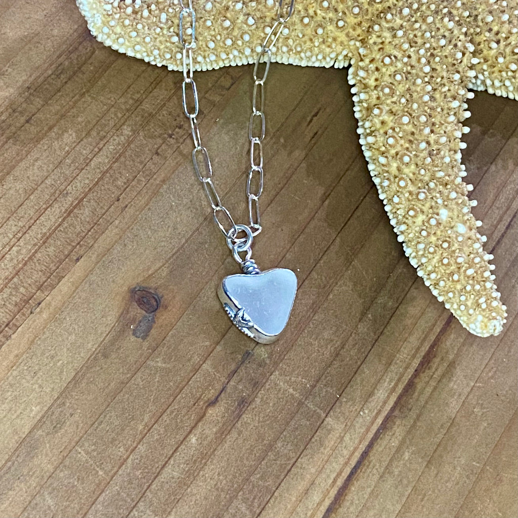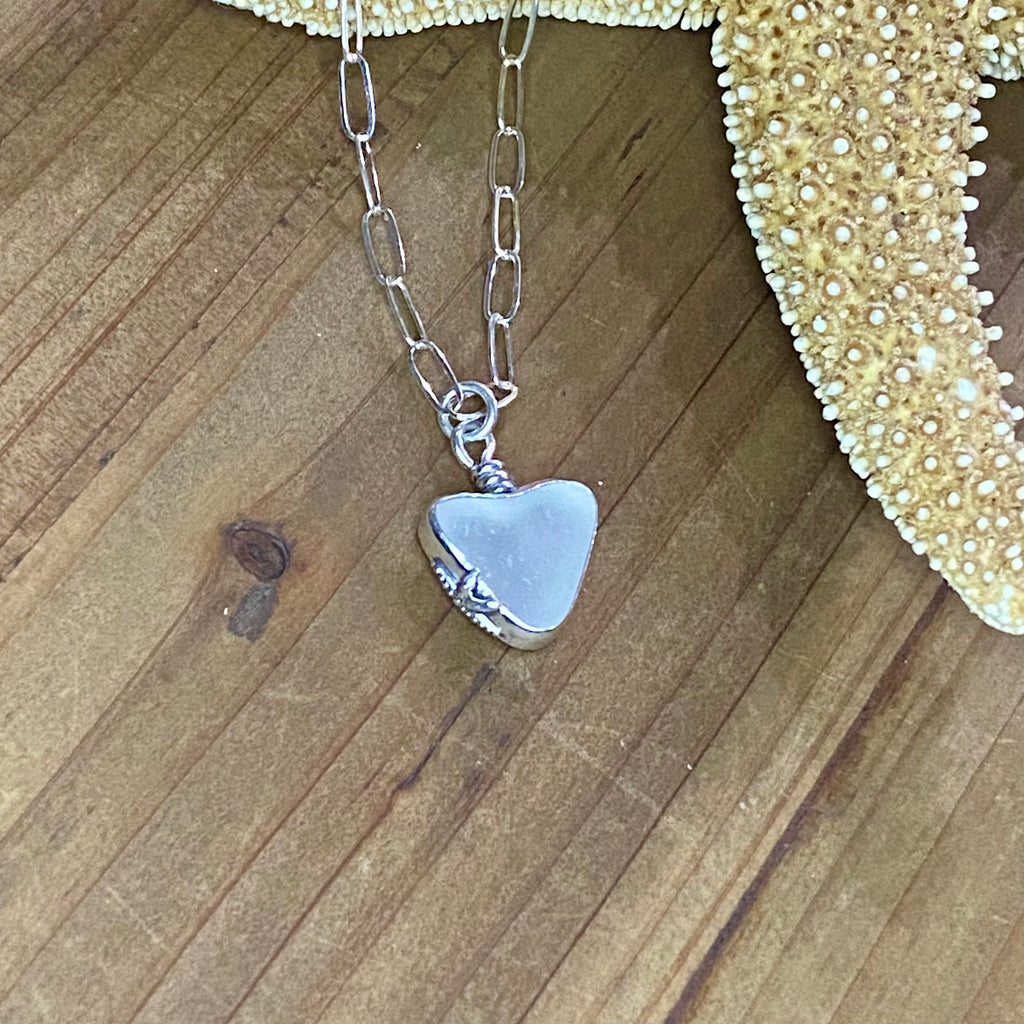 Signature Style Frost White Sea Glass Heart Necklace— Sterling Silver