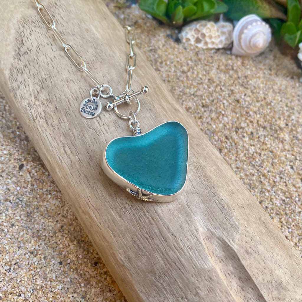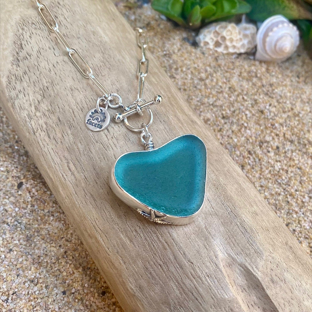 Signature Style Statement Sea Glass Heart Necklace— Sterling Silver